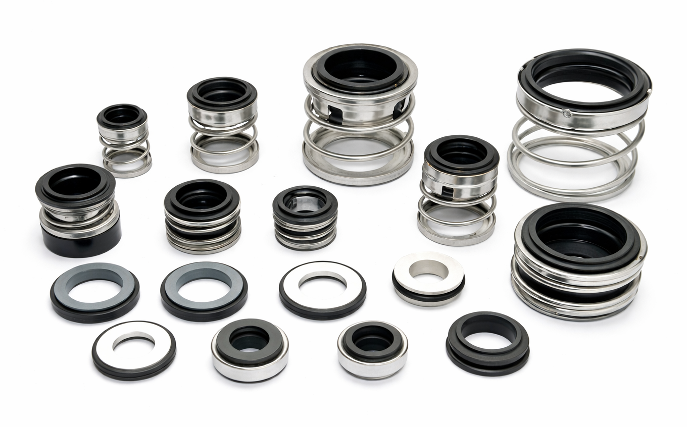 Mechanical seal kits typically include a combination of stationary and rotating seal faces, elastomer seals, springs, and stainless-steel components assembled to restore pump sealing efficiency. These components work together to prevent product leakage, contamination, and equipment downtime.